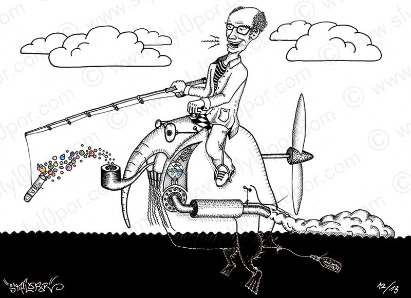 Ebenfalls in Anlehnung an die Unterwasserserie. Der Professor Doc Murdoch himself reitet auf einem seiner manipulierten Viecher aus.