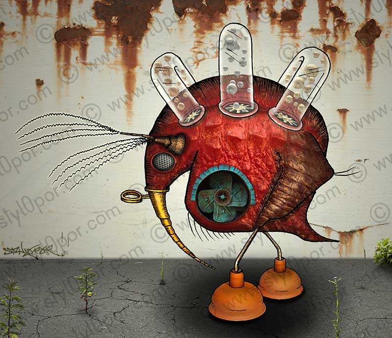 Das mag daran liegen, dass diese Weiterentwicklung durch die Texturierung eine neue Lebendigkeit erhält und das vormals kleine Wesen durch die große Darstellung im Druck eine komplett neue Ausstrahlung erhält.